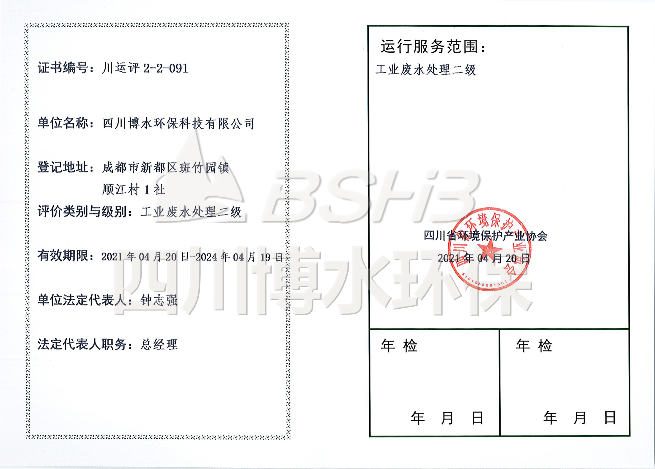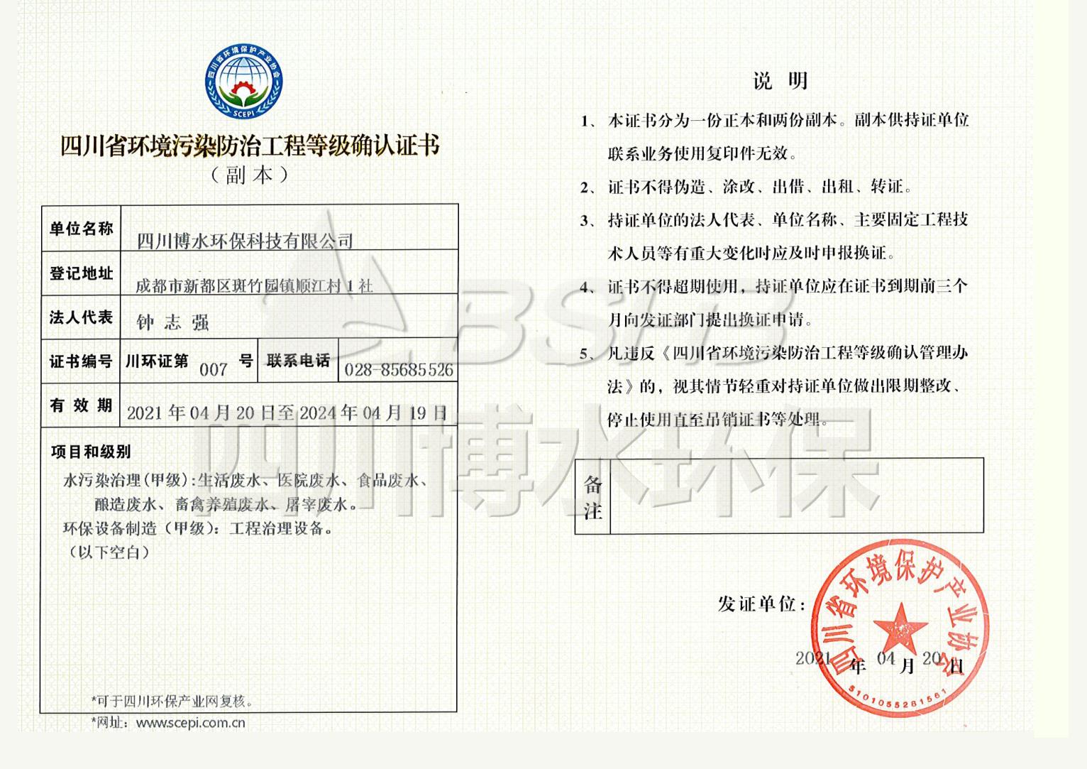水污染治理等级证书