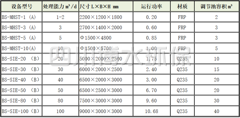 ① 提升泵两台,1用1备,Q=5m³/h,H=8m,N=0.37-0.55kw