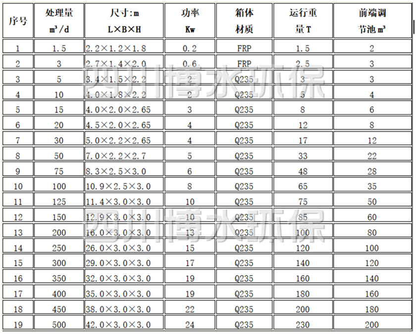 ① 涉及高原或冰冻地域,请选择将设备埋置于冰冻线以下,尽量满足冬季污水水源进入处理系统水温T≥18℃,以确保冬季细菌生存效果; ② 以上选型表数值仅适用于普通生活污水,排放标准≥污水综合排放标准GB8978-1996三级;