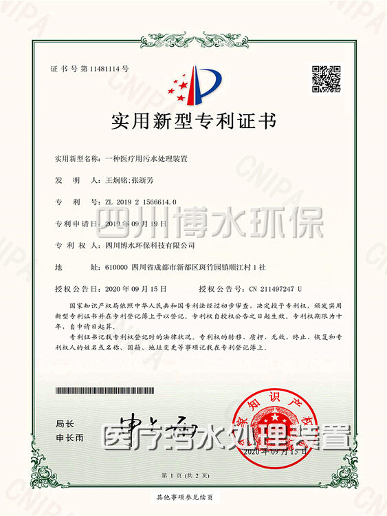 6 专利-医院污水处理7 专利-环保型造纸废水处理净化装置